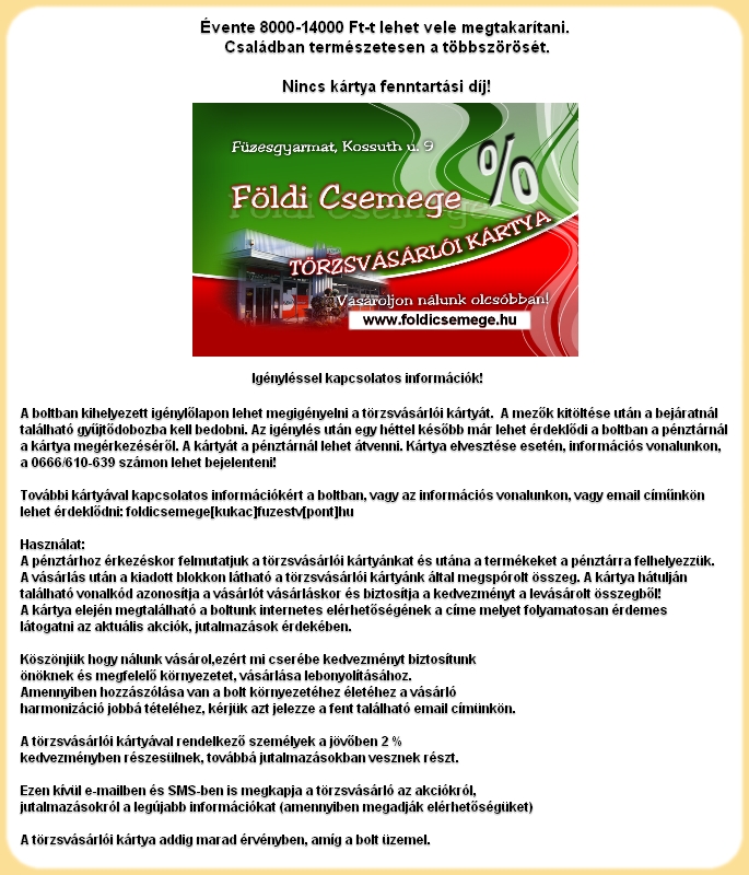 Legfrissebb két hetes akciónk időtartama: április 7-től, április 19-ig és a készlet erejéig! Akciónk megtekintéséhez kattintson ide vagy az aktuális ajánlataink menüpontra!
